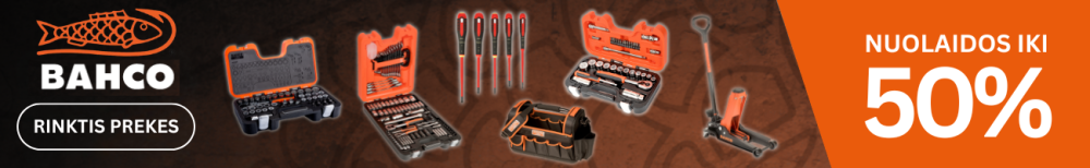 Akcijos ir išpardavimai ─ puiki galimybė sutaupyti įsigyjant aukščiausios kokybės įrankius ir jų priedus už mažesnę kainą. Dirbame tam, kad nuolat turėtume savo klientams puikių pasiūlymų, tad tikime, jog rasite ne vieną dėmesio vertą pasirinkimą. Pirkimas mūsų elektroninėje parduotuvėje yra itin patogus ir suteikia galimybę rasti reikiamas prekes vos keliais paspaudimais. O jeigu turite klausimų - jums visada pasiruošę padėti mūsų ekspertai. Mūsų siūlomas greitas pristatymas užtikrina, kad daugelis prekių pasieks jus vos per vieną darbo dieną, o skubantiems klientams siūlome patogų atsiėmimą Kauno prekių atsiėmimo punkte vos per 1val. po užsakymo pateikimo. Taip pat suteikiame galimybę įsigyti prekes lizingu, tad galite patogiai planuoti savo išlaidas ir mėgautis aukštos kokybės prekėmis nieko nelaukiant. Juk ne veltui mūsų moto – „išsirink patogiai, gauk greitai“!